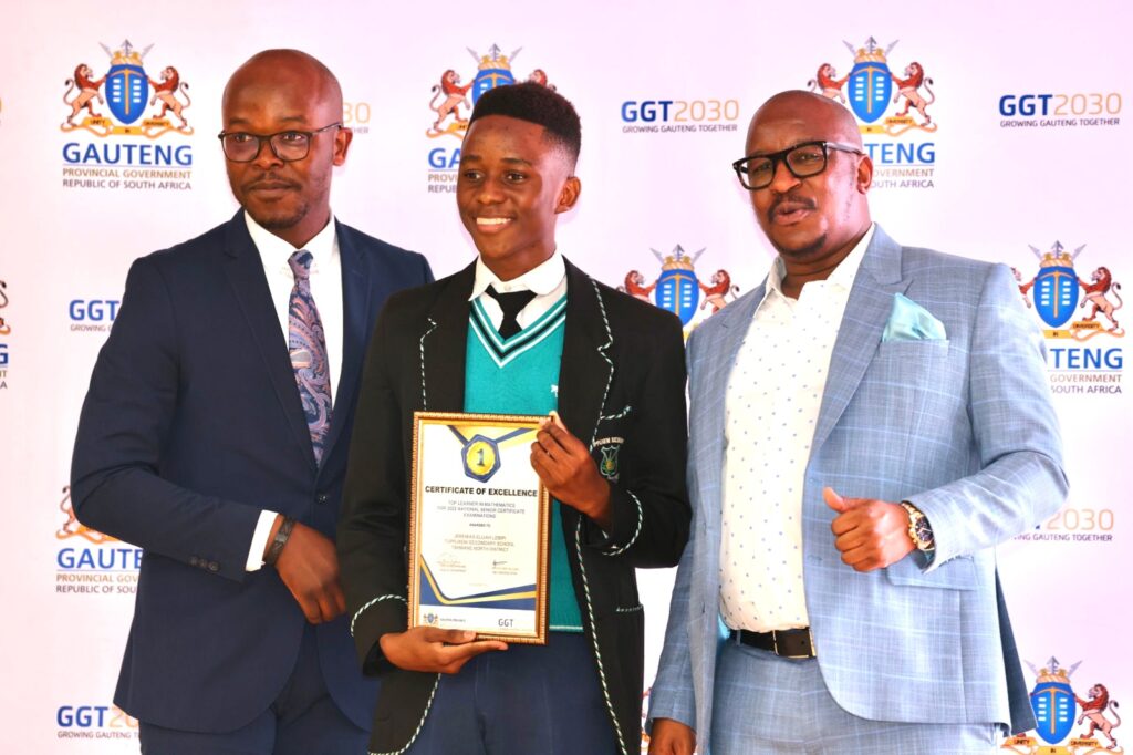 1st place: Sibusiso Mathebula: IR Lesolang Secondary School: Tshwane West District. Awards:  Setswana Home Language (270 ). English First Additional Language (281)  Mathematics (295 ) Life Sciences (285) Physical Science (300) Geography (286)   Life Orientation (279).