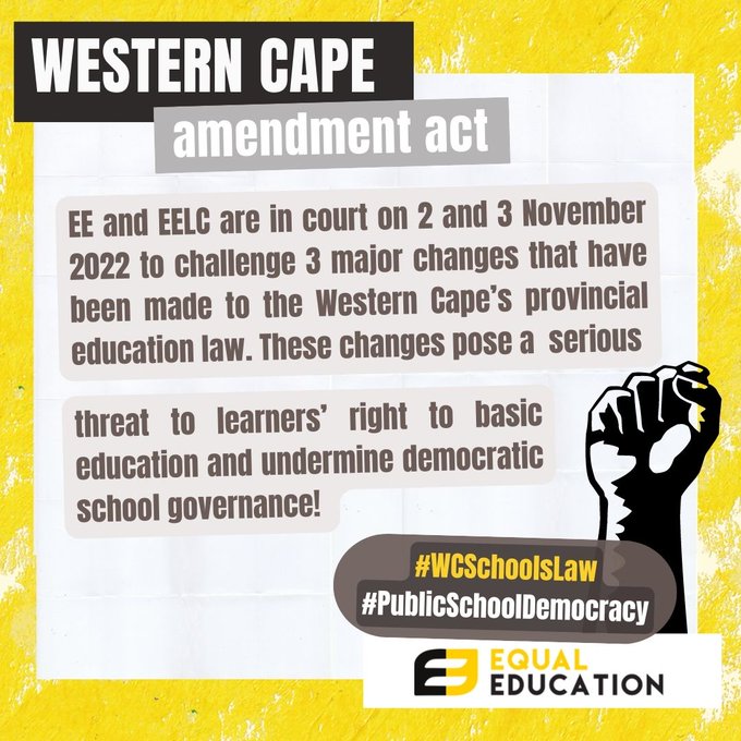 Equal Education (EE) is represented by the Equal Education Law Centre (EELC).